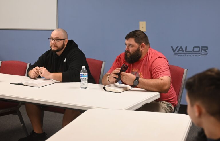 Valor time includes a 30 minute Bible study followed by 90 minutes of on-the-mat wrestling training.